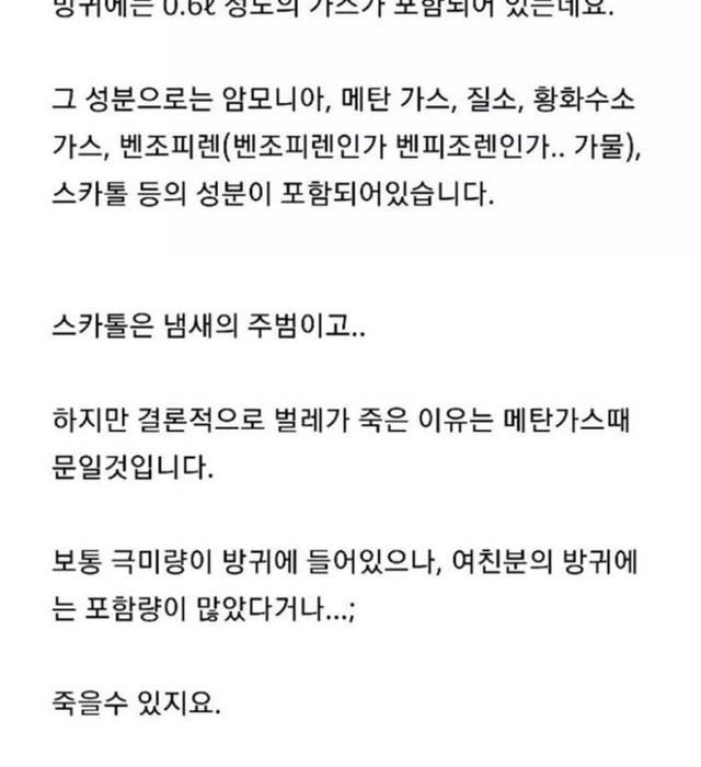 여자친구가 방귀뀌어서 벌레가 죽었는데요